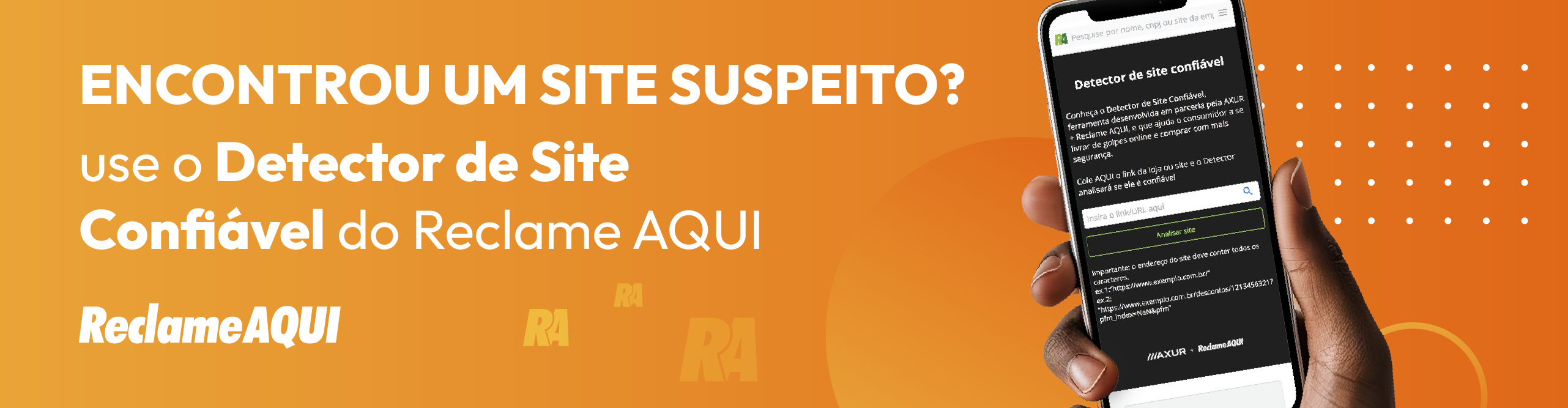 O Detector de Site Confiável é uma ferramenta desenvolvida pelo Reclame AQUI, em parceria com a AXUR, para aumentar a segurança das compras.